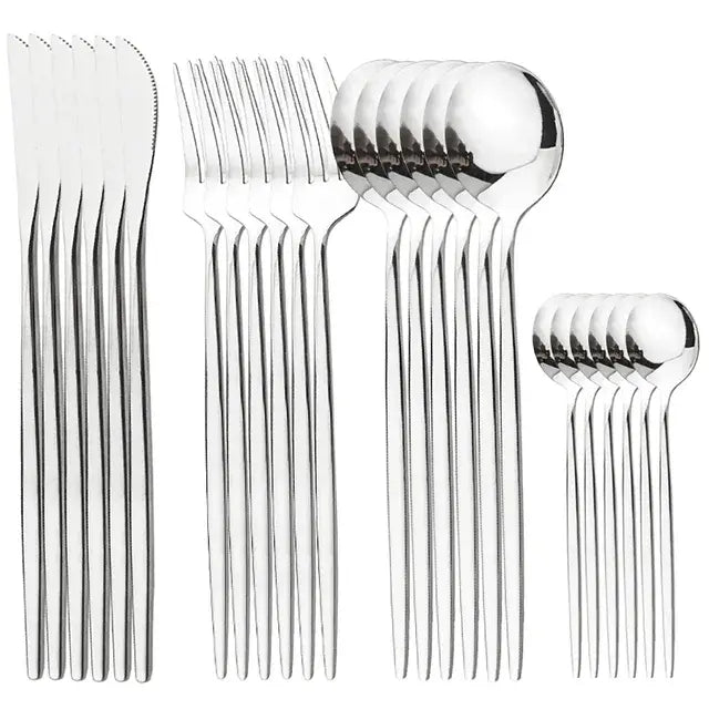Add a touch of glamour to your table setting with our Golden Stainless Steel Cutlery Set. Its stunning gold finish and sleek design make it a standout addition to any table, turning every meal into a special occasion. Whether hosting a dinner party or enjoying a quiet meal at home, let this cutlery set be the centerpiece of your dining experience.