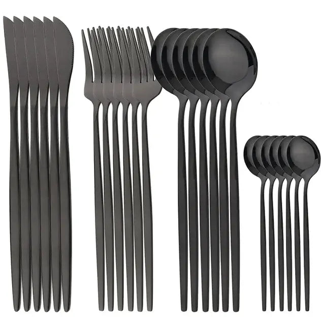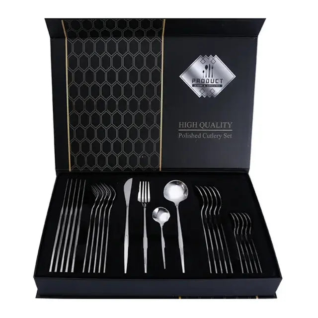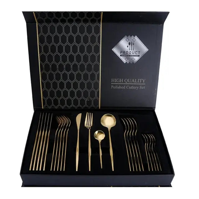 Dine in style with our Golden Stainless Steel Cutlery Set, complete with service for all your dining needs. From intimate dinners to lavish gatherings, this set includes everything you need to set a beautiful table for any occasion. Impress your guests and elevate your dining experience with the luxurious touch of gold.